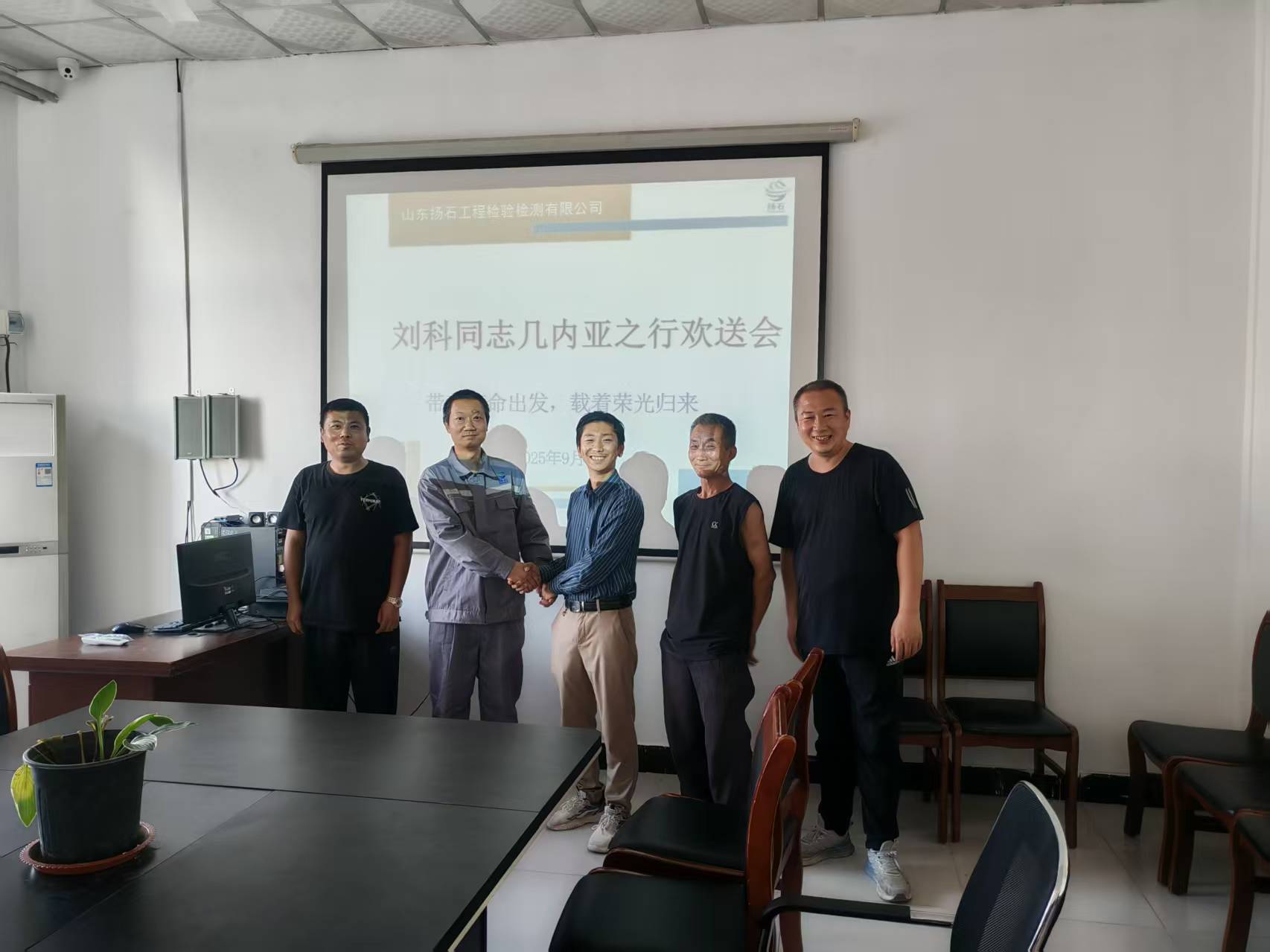 2025年9月25日,山東揚石工程檢驗檢測有限公司就劉科前往幾內(nèi)亞共和國檢測項目工作之行,舉行歡送會,劉科同志...